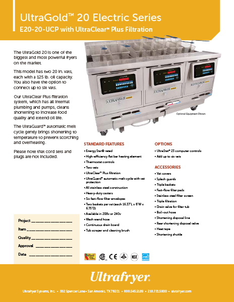 F-ID-20x17 Jumbo Series Fryer Specification Sheet