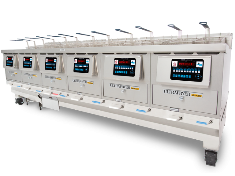 The UltraGold P20-20 series six vat gas fryers come standard with our patented PAR-2 heat exchanger, thermostatic controls, and UltraClear Plus filtration. UltraStat® 23 computer controls are optional.